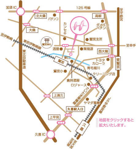 ●自動車…東北自動車道久喜IC・加須ICより、それぞれ10分
