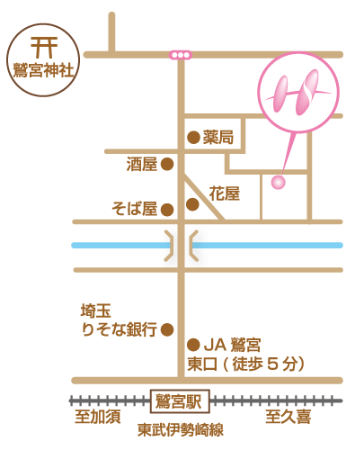 ●電車…東武伊勢崎線鷲宮駅東口より徒歩5分